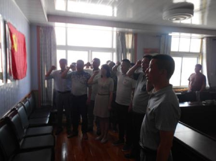 6月21日上午,為迎接中國(guó)共產(chǎn)黨成立95周年之際,宵洋物流公司黨支部在黨建室為全體黨員過(guò)一次政治生日。會(huì)上新、老黨員進(jìn)行了交流,老同志談了自已入黨以來(lái)在思想上、工作上的一些認(rèn)識(shí)和好的建議,并對(duì)新同志提出了更高要求,新黨員表態(tài)要向老同志看齊,努力學(xué)習(xí),勤奮工作,牢固樹(shù)立全心全意為人民服務(wù)的宗旨,最后全體黨員胸前戴著黨微、高舉右拳、面向黨旗重溫入黨誓詞。(宵洋葛高平報(bào)道)