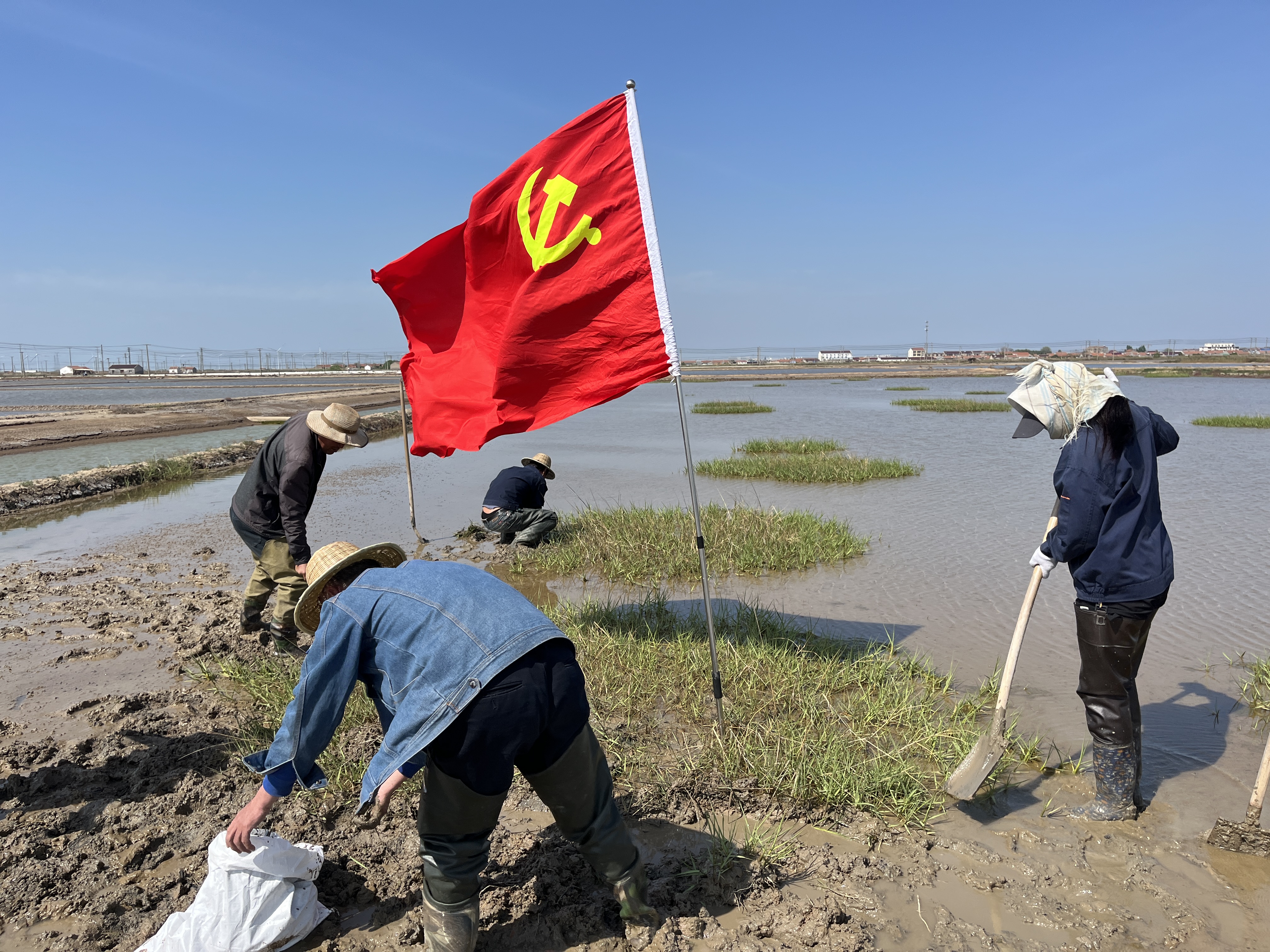 隨著氣溫的升高和蒸發(fā)量的逐步增加,2 班“甜頭”大米草即將進入生長旺盛期。這些大米草嚴重制約了正常制鹵工作,給生產(chǎn)帶來了不小的挑戰(zhàn)。為了防范未然,黨支部帶領(lǐng)職工們積極行動起來,他們齊心協(xié)力努力理順走水路線,不斷完善灘地條件。大家充分發(fā)揮團結(jié)協(xié)作的精神,為保障生產(chǎn)的順利進行貢獻著自己的力量。