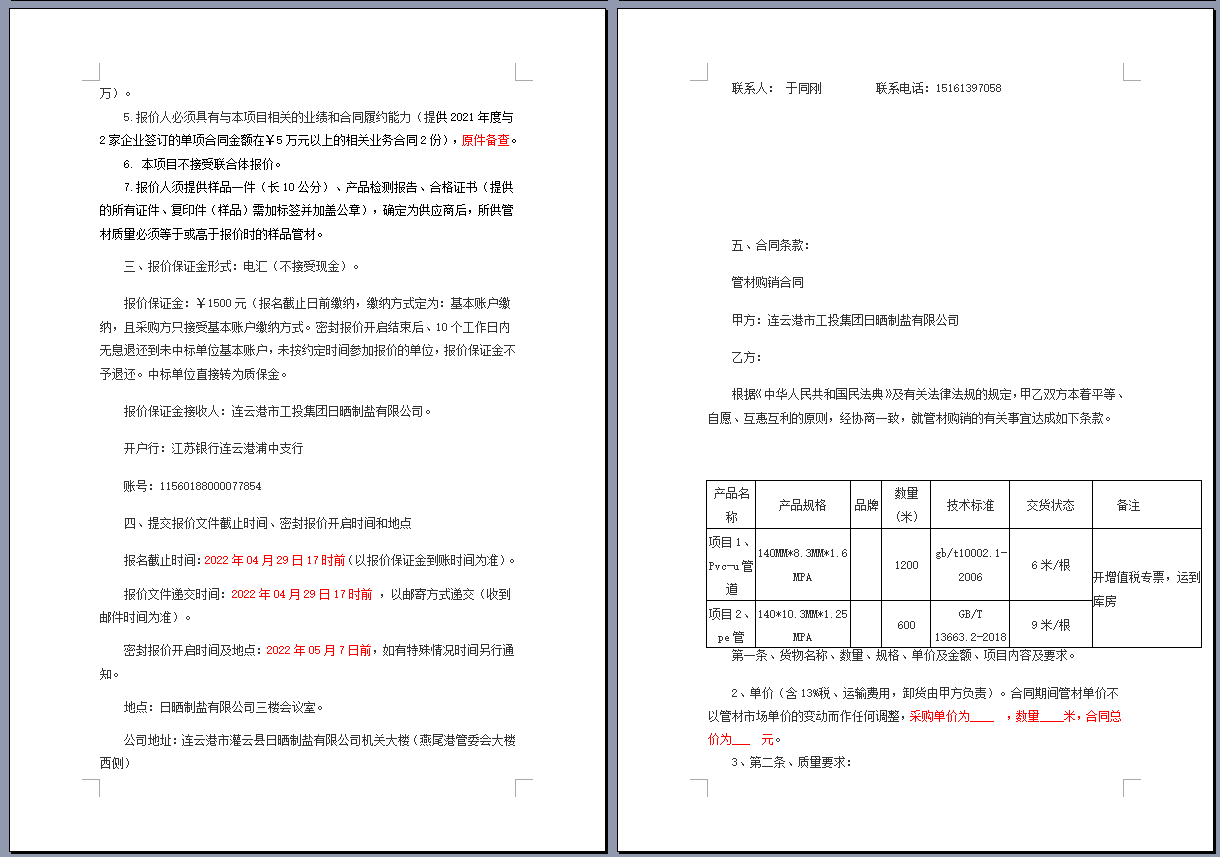 連云港市工投集團(tuán)日曬制鹽有限公司管道采購(gòu)項(xiàng)目 公開采購(gòu)文件