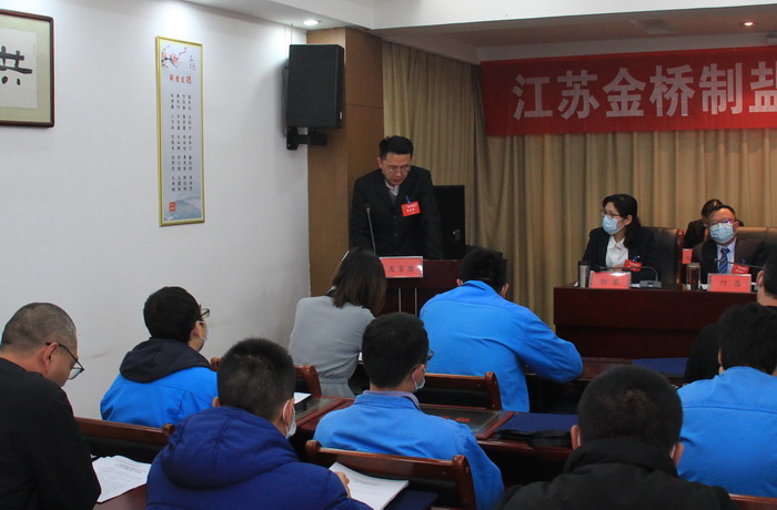 大會簽訂了《2021年度集體合同》、《2021年度經(jīng)營認標責(zé)任書》,與會代表認真審議通過了總經(jīng)理工作報告,通過了大會決議、有關(guān)方案和意見。加工鹽車間、包裝鹽車間、銷售部依次作了表態(tài)發(fā)言。大會表彰了第九屆“金橋杯”勞動競賽、2020年“大干四季度”勞動競賽的先進集體和先進個人以及2020年度“金橋工匠”。(金宣)