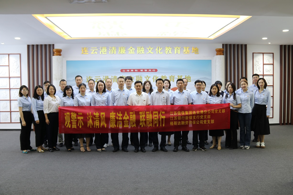 為進(jìn)一步深入推進(jìn)清廉金融文化建設(shè),引導(dǎo)黨員干部牢固樹(shù)立廉潔自律意識(shí),做到警鐘長(zhǎng)鳴,切實(shí)發(fā)揮“聯(lián)融”黨建品牌的牽引帶動(dòng)作用。近日,我支部與江蘇信保集團(tuán)連云港分公司黨支部、江蘇銀行新銀支行黨支部聯(lián)合組織“觀警示·沐清風(fēng) 廉潔金融·聯(lián)融同行”共建活動(dòng),一同前往清廉金融文化教育基地,接受反腐倡廉教育,感受清廉金融文化洗禮。