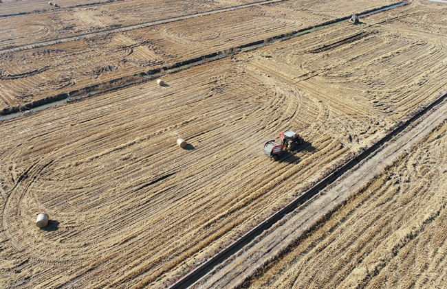 連日來,在青口公司大新農(nóng)場(chǎng)已收割完的田地里,4臺(tái)大型機(jī)械正在收割后的稻田里來回穿梭,每過短短幾分鐘時(shí)間,機(jī)器就能“卷”出一捆打包好的秸稈。壓實(shí)打捆后的秸稈錯(cuò)落排放在田間,成了豐收后的新景觀,也是我公司生態(tài)農(nóng)業(yè)發(fā)展跨步向前、職工群眾生活環(huán)境持續(xù)向好的縮影。