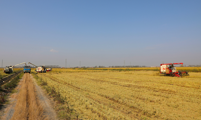 據(jù)了解,今日搶先收割的是今年引種的新品優(yōu)質(zhì)粳稻南粳58,試種面積大約100畝,具有南粳系列品種的柔、香、糯、白等優(yōu)良食味特征。