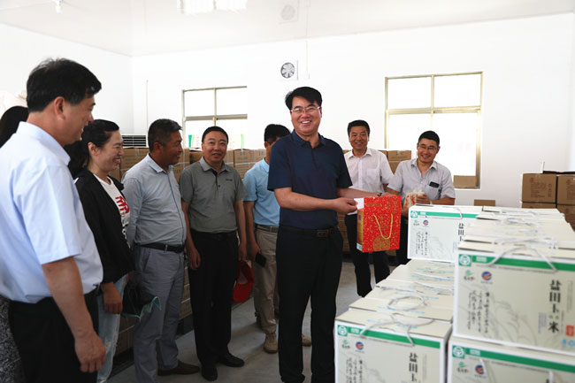 王董事長一行先后到玉田農(nóng)莊、大新農(nóng)場有機(jī)水稻種植基地、養(yǎng)殖池塘、小附河亮化工程現(xiàn)場、鹽田玉米生產(chǎn)車間、展銷中心等地進(jìn)行了考察調(diào)研。