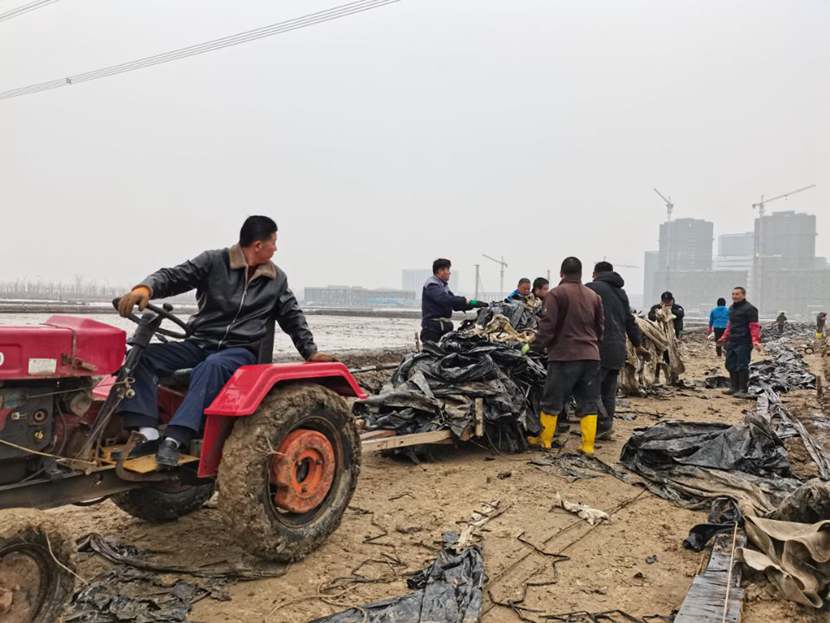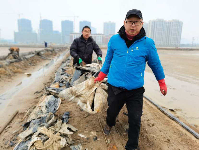 110日下午,第一批馳援隊伍——翔立分公司黨員突擊隊到達(dá)先鋒班組,結(jié)合海州灣公司黨員突擊隊共30余名隊員,穿戴好工作服、水鞋,兩人一組,三人一隊,雙肩挑,三人抬,緊張有序地清理生產(chǎn)現(xiàn)場拆除下來的廢棄的塑布、鋼絲等雜物。
