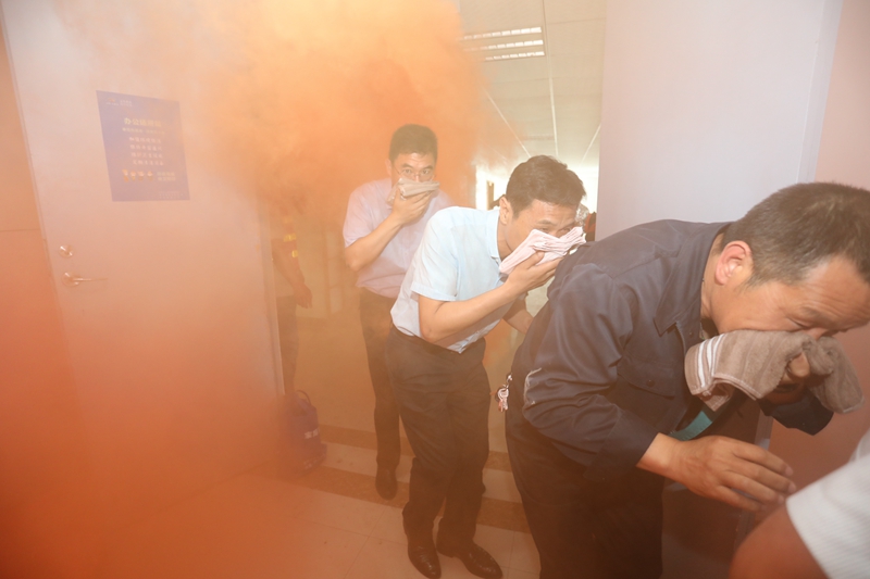 在消防演練現(xiàn)場我們模擬了突發(fā)火災(zāi),受濃煙影響的參培人員進(jìn)行快速有序的疏散逃生。按照董教員的講解要求,大家“三折八疊”毛巾,浸濕后捂住口鼻,俯下身子,肘部依靠著墻壁,一個跟著一個,在濃煙中疏散撤離。接著演練還進(jìn)行了油盆滅火和高壓水槍使用培訓(xùn)實操。參演人員嚴(yán)肅認(rèn)真,服從指揮,整個應(yīng)急疏散演練過程忙而不亂、井然有序。