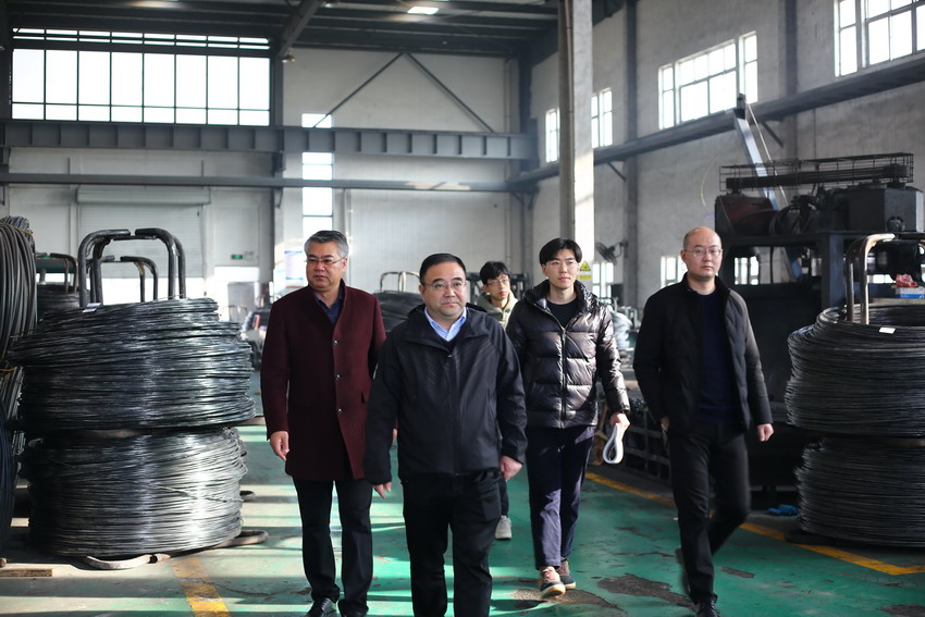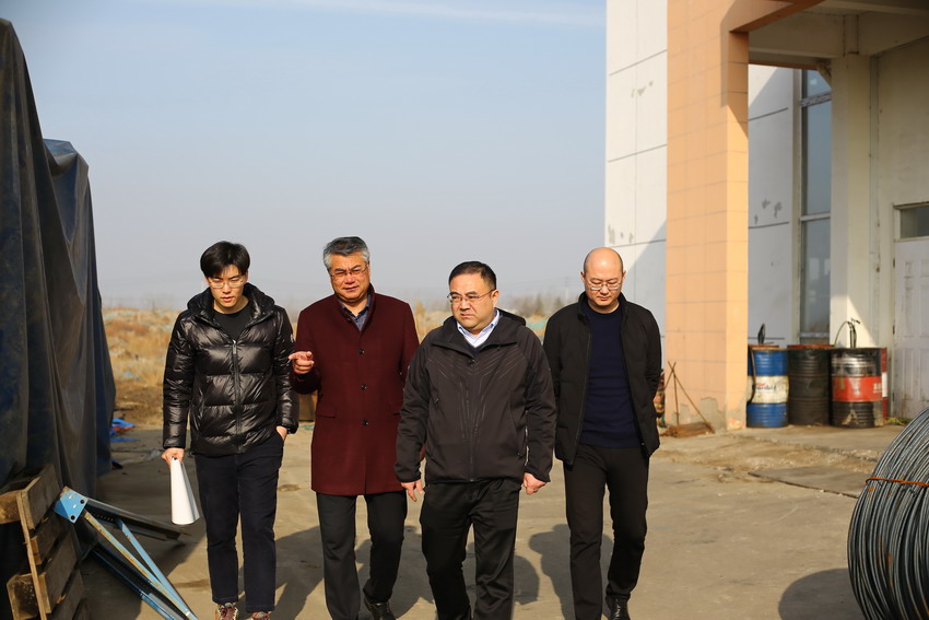 在公司領(lǐng)導(dǎo)王德志、卞霄等陪同下楊龍董事長視察美多利中小企業(yè)園生產(chǎn)情況。