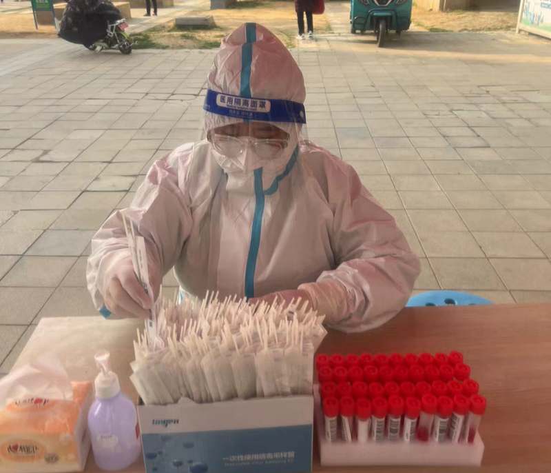 ? 9:00,所有人員就位,我也開始了我的“大白”體驗課,工作就是核對身份與二維碼一致,并進(jìn)行拍照采樣。身穿防護服,站到崗位上,面前就是群眾,心中滿腔責(zé)任感,使命感。