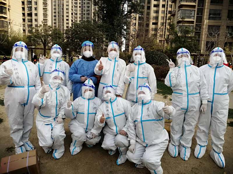 ? 3月12日,晴,8:00到達(dá)社區(qū)核酸采樣點,準(zhǔn)備上崗,社區(qū)負(fù)責(zé)人給我們進(jìn)行了“防護服穿脫”及防疫知識的講解學(xué)習(xí)等一系列十分細(xì)致地培訓(xùn)后,有點興奮的穿好“大白服”,帶上手套、頭套和面罩,社區(qū)阿姨還幫我在衣服上畫上了可愛的涂鴉;