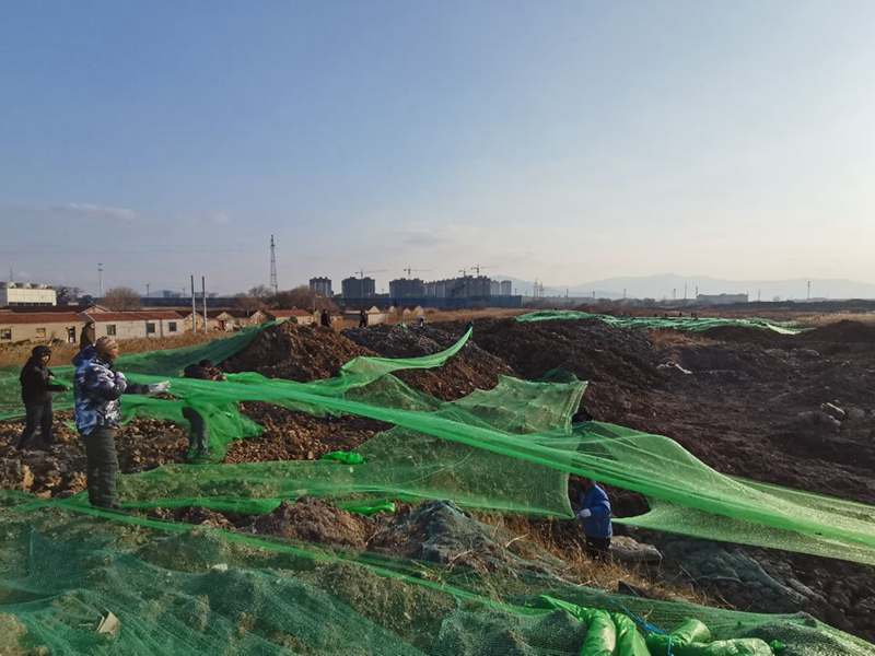 一名黨員就是一面旗幟,十余處山丘上,不只是一面“黨員突擊隊(duì)”旗,而是幾十上百面的“戰(zhàn)旗”。在鮮紅旗幟的引領(lǐng)下,僅僅一天時(shí)間,突擊隊(duì)員們“沖鋒陷陣”,攻克一個(gè)又一個(gè)“山頭”,鋪設(shè)800余張防塵網(wǎng),共計(jì)200余畝裸土。