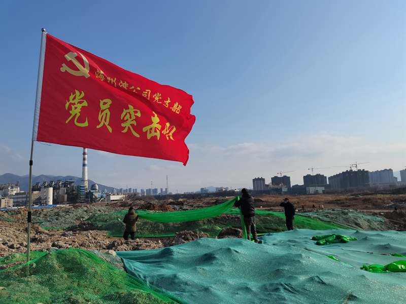 1月20日,在臨達(dá)公司330畝貨場(chǎng)的一處“山丘”上,一面鮮紅的海州灣黨支部“黨員突擊隊(duì)”旗格外引人注目。當(dāng)天中午12時(shí),聽聞兄弟單位臨達(dá)公司急需人手苫蓋防塵網(wǎng),支部書記劉天義一聲令下,海州灣“黨員突擊隊(duì)”立即集結(jié),穿戴好勞動(dòng)裝備,奔赴環(huán)境整治“主戰(zhàn)場(chǎng)”。