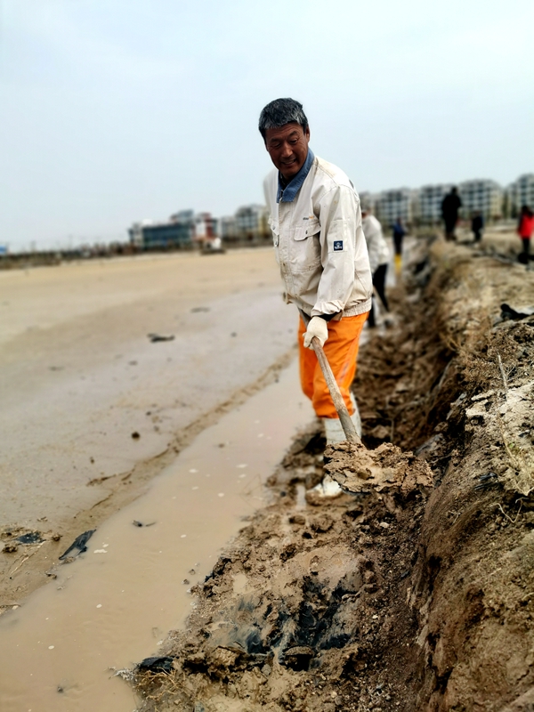 打虎親兄弟,上陣父子兵。海州灣公司得知兄弟單位求助后,18個生產(chǎn)單元職工連帶3名生產(chǎn)班組長全家總動員,手拿鐵掀,腳登水靴,齊齊上陣。