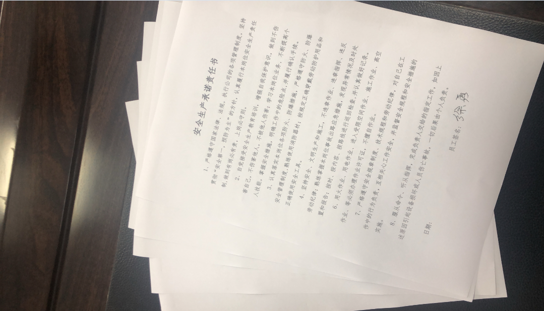 會議落實了疫情期間工作開展;落細各項工作分工;對全年任務指標進行分解到人;并對下一階段工作開展進行安排布置。隨后對參會人員發(fā)放安全試題,所有與會人員簽訂了安全生產(chǎn)承諾責任書,在今后的工作中時刻提醒員工安全產(chǎn)工作要牢樹立安全發(fā)展的理念,充當安全監(jiān)督員和保衛(wèi)者