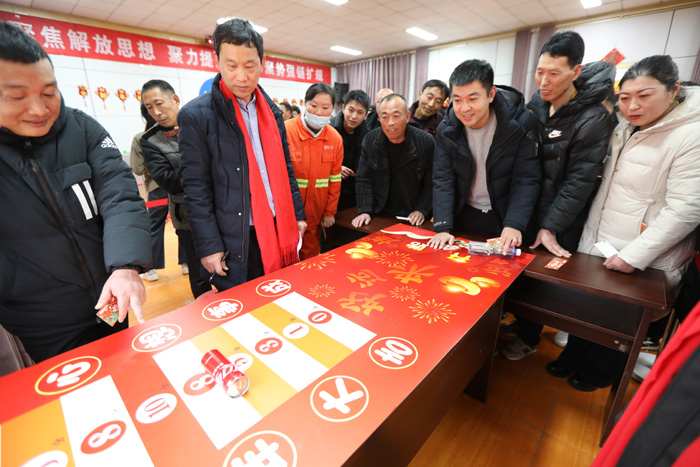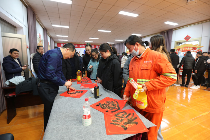 現(xiàn)場(chǎng)開(kāi)展的寫(xiě)“?!彼汀案!被顒?dòng),與項(xiàng)目比賽同頻共振,在喜慶的音樂(lè)聲中把一張張紙紅墨香的“?!弊炙蛡€(gè)每一名職工,為營(yíng)造喜樂(lè)福滿(mǎn)的“新春賽場(chǎng)”增色添彩,增強(qiáng)職工的成就感和幸福感。(徐宣 徐工)