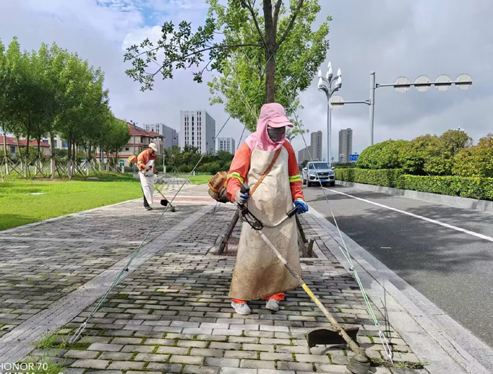 ????? 黑色柏油馬路上,熱浪滾滾,橙色工作服在強(qiáng)烈陽光照耀下顯得格外引人注目。女子班組保潔人員在班長龔飛帶領(lǐng)下,背著30余斤重的割草機(jī),來回?cái)[動(dòng)手中機(jī)械,忘我工作達(dá)7個(gè)多小時(shí),“收割”云河南路生活區(qū)周邊雜草20多處;人工清掃裝運(yùn)施工車輛拋灑石子、泥土30余車,擦洗站臺座椅40多個(gè),清掏果皮箱余200余只。