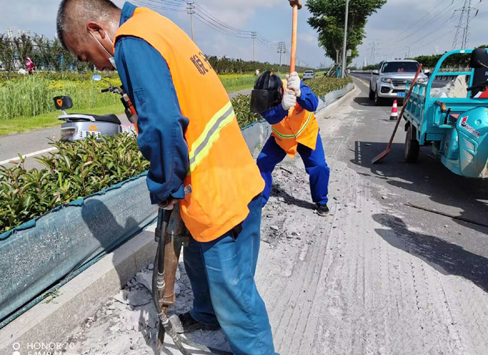 ????? “哪里有急、難、險(xiǎn)、重問題,就有黨員的身影”。8月4日7時(shí)許,石化一班班長巡查中發(fā)現(xiàn),石化園區(qū)主干道臨海公路與石化七道交接處,發(fā)現(xiàn)兩處近200多米長的混凝土水泥拋灑物,如不及時(shí)處理,易造成路面行車安全交通隱患。薛明柱迅速召集隊(duì)員到達(dá)現(xiàn)場,大家無懼灼熱陽光暴曬,三人一組,兩人一對,不停按動(dòng)手中電錘,揮動(dòng)手中鐵錘,反復(fù)撬動(dòng)緊貼地面混凝土,豆粒大的汗珠從臉頰兩旁滾滾流下,盡管有的同志手磨出了血泡,但仍然堅(jiān)守崗位。經(jīng)過近4個(gè)多小時(shí)的努力奮戰(zhàn),轉(zhuǎn)運(yùn)打包固體水泥塊達(dá)200多袋,整潔柏油路面再次還原本色。(楊波)
